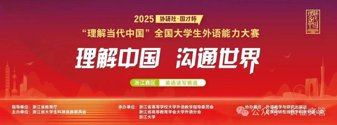 近日,第三届“外研社·国才杯”“理解当代中国”浙江省大学生外语能力大赛读写赛道(高职组)成绩新鲜出炉!我院公共外语教研室专项竞赛团队(赵素君、杨成青、王秋)指导的宋其萱同学(24级大数据与会计专业)斩获银奖!