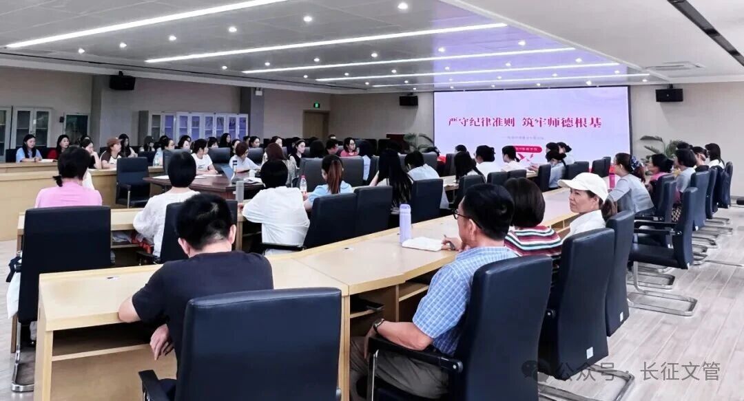 学院副书记丁慧瑛为全体教师作了“筑牢师德根基,强化使命担当”专题培训。培训强调要强化思想意识,提高思想站位,要求全体教师深刻认识新时代教育的使命担当,坚持正确的政治方向,全面落实立德树人根本任务。丁书记着重阐述了构建和谐师生关系的重要性,指出良好的师生关系是提升教学质量的基础,要求教师关心关爱学生,做学生的良师益友。同时,还就如何将师德修养转化为提升教学质量的实际行动提出了具体要求,包括更新教育理念、改进教学方法、注重因材施教等,引导教师以高尚的师德风范和扎实的专业学识,当好学生健康成长的指导者和引路人。