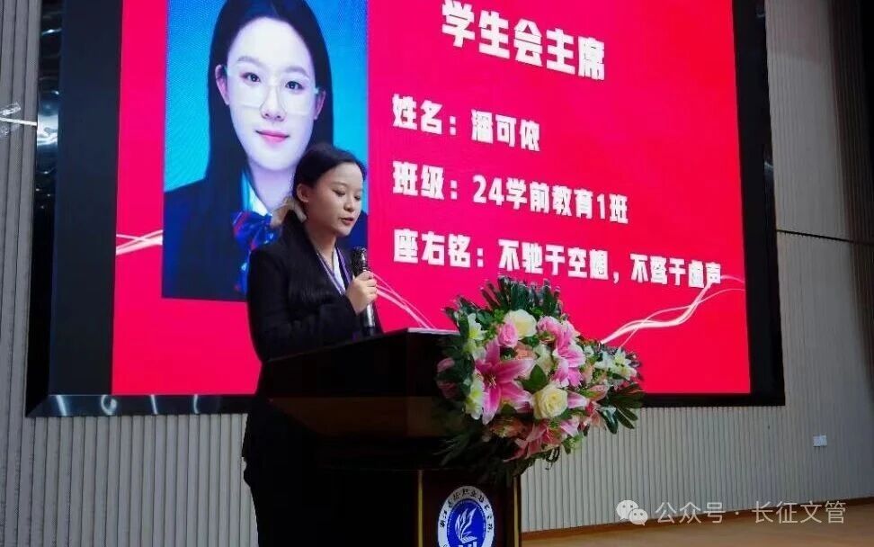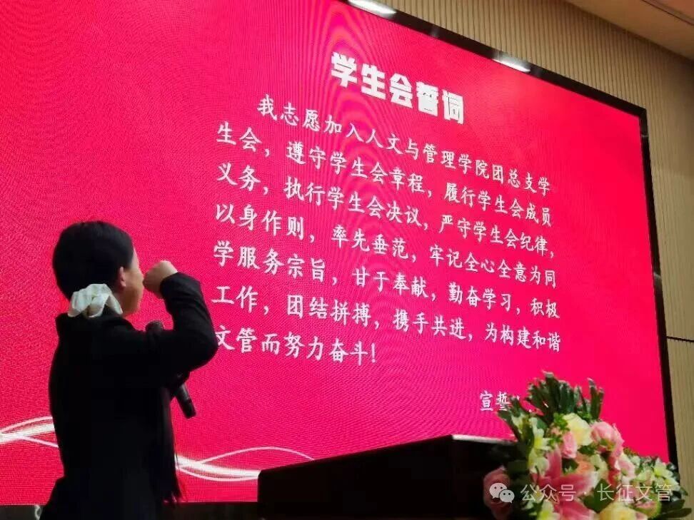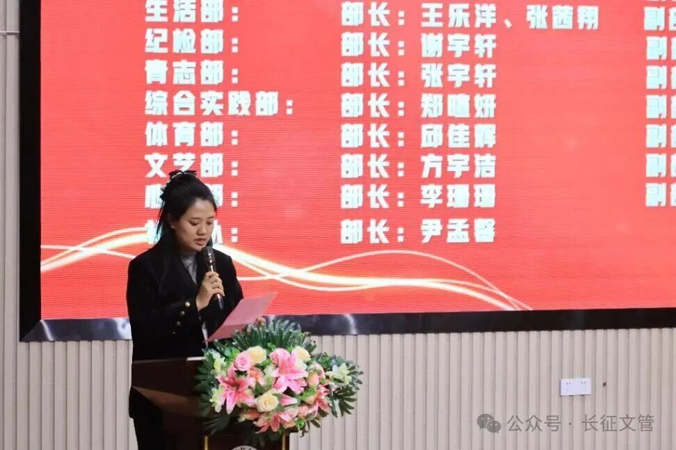 团总支书记潘琦琛宣读了文管学院新一届团总支学生会干部任命文件,并对大家的付出表示感谢与肯定。她希望全体干部团结协作,凝聚合力,共同推动学生会工作迈上新台阶。
