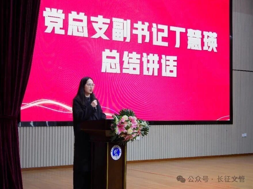文管学院党总支副书记丁慧瑛进行总结发言,她表示学生干部的身份,是一份荣誉,更是一份责任,需要主动扛起的责任。它不只是头衔,更是选择,选择在需要时站出来,选择为学院多尽一份心力。她相信新一届学生干部、干事能真正理解这份担当,用行动服务同学,用肩膀扛起困难,用汗水创造价值。共同书写出属于这一届扎实而精彩的新篇章。