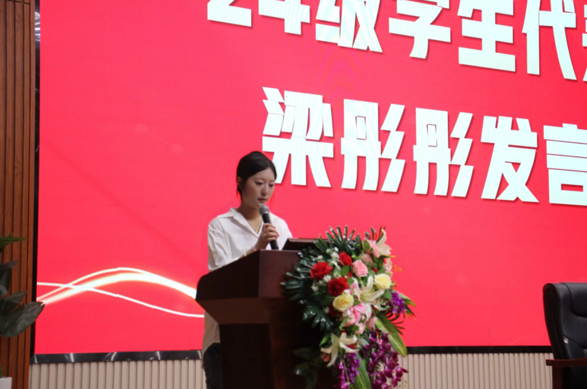24级学生代表梁彤彤分享了感悟:其一,认识自己,做好规划。大学是自由探索的天地,大家要超越“考高分、高绩点”,以高远视野确立人生方向;其二,坚持学习,勇于创新,以批判性思维大胆质疑、小心求证;其三,开展合作式学习,增强团队精神,在实践与合作中享受知识魅力、深化认识。愿新生们努力奋斗,书写属于自己的精彩篇章!