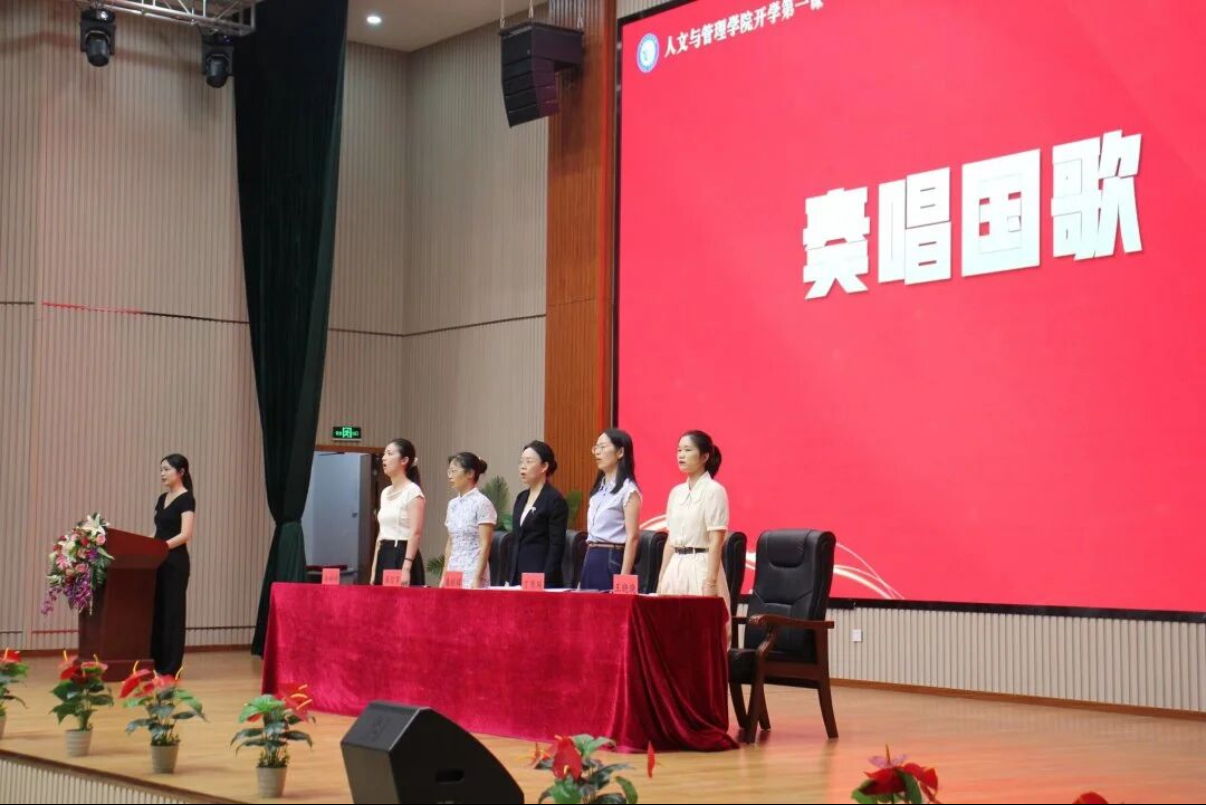 随着嘹亮的《国歌》响起,全体师生齐唱《国歌》,见面会在庄严的国歌声中正式拉开帷幕。