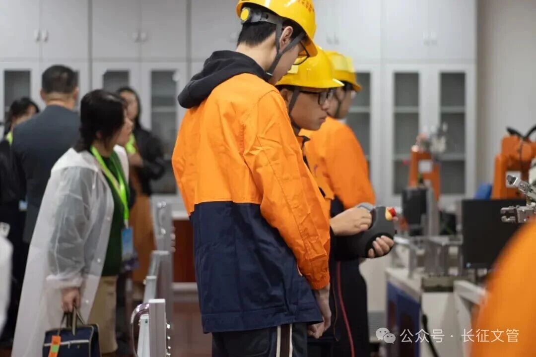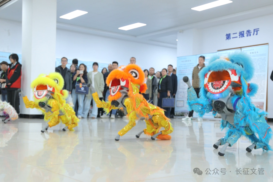 上午会议结束后,参会人员体验了由校企共研的智能对弈机器人、庞伯特乒乓球发球机器人等设备,近距离感受了工业机器人磨抛实训设备、无人机表演,一同观看了由智能技术学院科创中心工业机器人团队带来的机器狗舞狮演出。参会人员还一同前往学校图书馆、实训室、学生宿舍等场所进行参观考察。