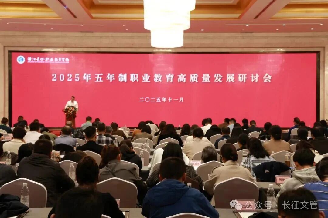 11月6日,学校2025年五年制职业教育高质量发展研讨会在第一报告厅召开。浙江省教育厅职成教教研室主任、浙江省教育科学研究院职教所所长崔陵,学校党委书记、常务副校长王其军,副校长冯新红出席会议,学校各二级学院及相关职能部门负责人、70所合作中职学校校领导等300余人参加会议。会议由冯新红主持。