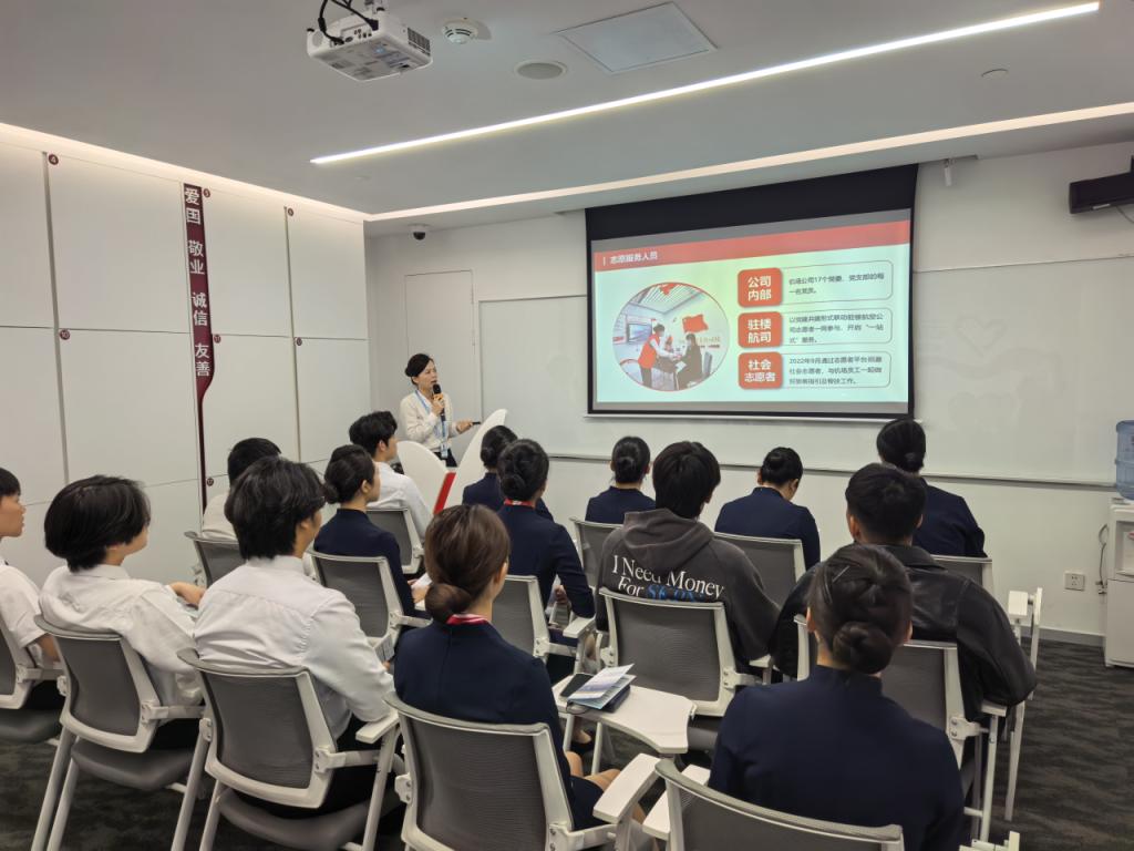 抵达机场后,杭州萧山国际机场业务主管王梦婷为同学们带来了一场贴近实战的岗前专项培训。王老师结合机场运行的实际场景,从航站楼功能布局、航班运行基础知识,到旅客服务礼仪规范、特殊旅客帮扶技巧,以及突发情况的应急处理等方面进行了深入浅出的讲解。同学们身着整齐的制服,精神饱满,认真聆听并做好记录,将“安全第一,服务至上”的民航理念深植于心。