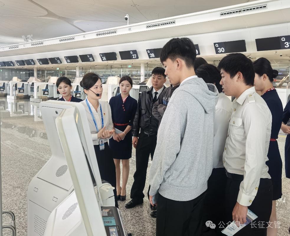 培训结束后,同学们迅速转换角色,正式走上志愿服务岗位。在值机大厅、自助托运区、安检引导区等客流密集的区域,随处可见我校空乘学子挺拔的身姿和温暖的笑容。面对焦急寻找登机口的旅客,他们耐心指引;面对不熟悉自助设备的老人,他们手把手协助操作。规范的礼仪、流利的表达、得体的举止……同学们用实际行动,将课堂上学到的理论知识完美转化为优质的机场地面服务,赢得了现场旅客和机场工作人员的一致好评。