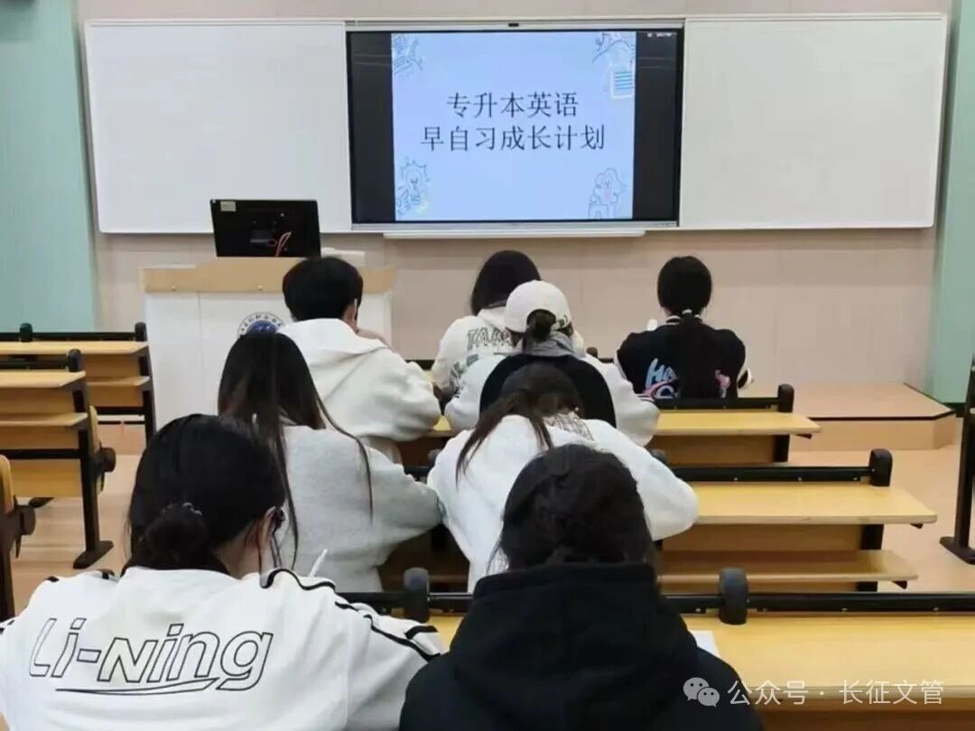 晨光筑梦,备考前行。为助力学院专升本学子夯实英语基础、营造勤学善思的备考氛围,人文与管理学院正式启动专升本英语早自习成长计划,以专属阵地、固定时段、科学安排,陪伴同学们稳步冲刺逐梦。