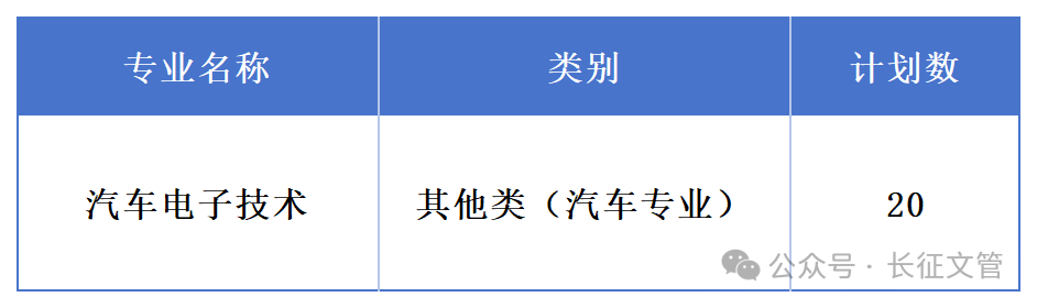 2026年高职提前招生面向单独考试招生其他类(汽车专业)计划20名,具体专业计划如下: