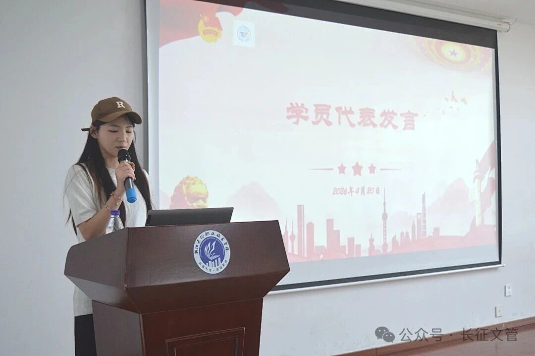 25空中乘务单考单招班王涵韵作为学生代表发言,表示作为团校的一名学员,会珍惜此次学习机会,用高度热情和实际行动学好团校课程,培养责任担当,实现德智体美劳全面发展,以团员标准要求自己,成长为合格的社会主义建设者和接班人。