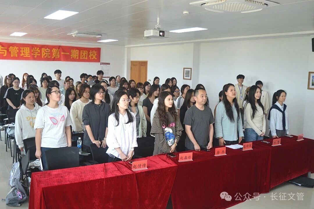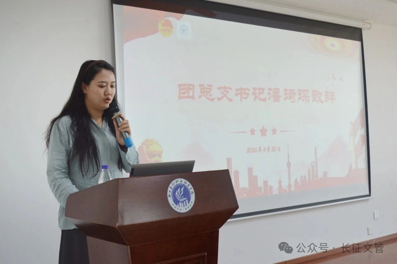 为了深入贯彻落实新时代青年工作的重要思想,全面加强青年思想政治引领,推动广大青年积极投身社会主义建设。2026年4月20日文管学院第一期团校开班仪式在图书馆举行。文管学院学工办副主任潘琦琛及全体辅导员老师出席此次开班仪式。