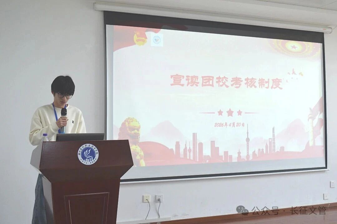 由组织部成员25空中乘务(五年制)三班万子俊针对团校考核制度、综合考核方法进行详细的解读。