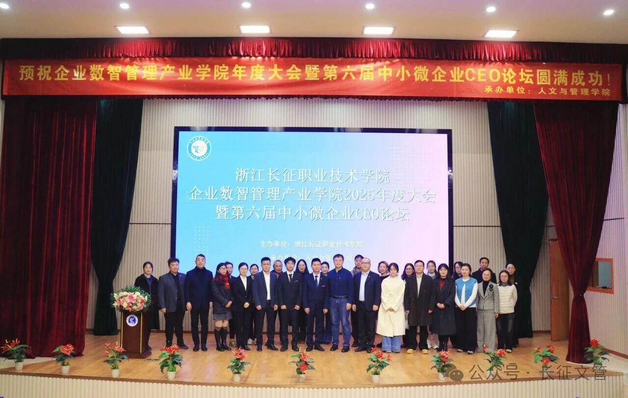 数智引领发展,校企协同育人。为进一步深化产教融合,打通教育、人才、产业与创新的链接,人文与管理学院于12月24日在校第二报告厅举办了“企业数智管理产业学院年度大会暨第六届中小微企业CEO论坛”。本次活动共有25家企业的26位企业家及高管出席了本次大会。人文与管理学院全体教师以及来自各个专业的学生共200余人参加了本次大会。