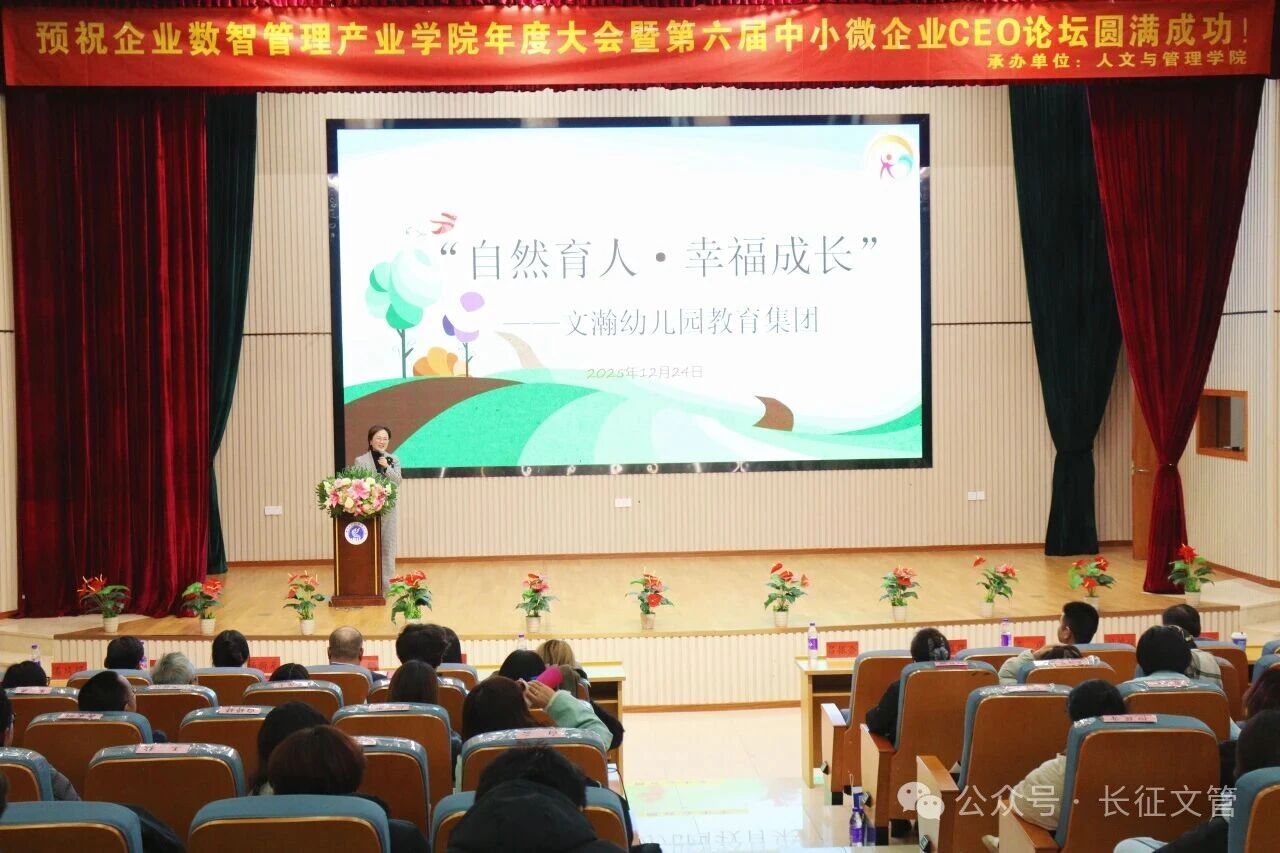 最后,文瀚幼儿园教育集团副园长张婵带来了题为“自然育人·幸福成长”的主题讲座。她结合一线教育实践,以亲切生动的讲述方式,阐释了自然教育理念如何滋养幼儿身心、促进幸福成长。演讲内容生动务实,启发性强,在学生心中播下了探索的种子,也为在座的企业家与教师带来了关于人才培养的深刻思考与行动启发。